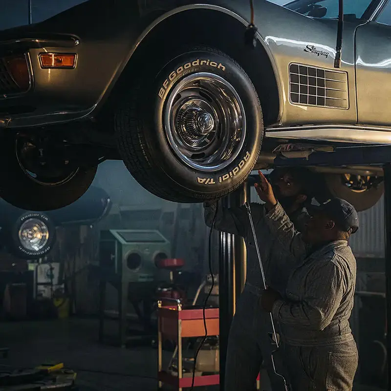 Dess vintageinspirerade upphöjda vita bokstäver och breda profil är särskilt framtagna för muskelbilar och klassiska bilar.